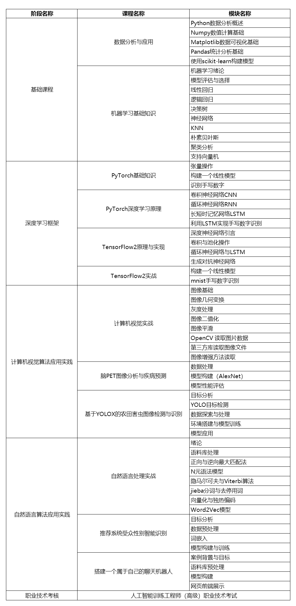 人工智能训练工程师课程是一套涵盖专业化知识架构、科学化培养路径与系统化考核标准的高端 AI 训练人才培养体系。该体系旨在全面衡量从业者在数据分析、模型构建、算法应用及业务场景落地等方面的核心能力,满足人工智能、互联网、智能制造、金融等多行业对高质量 AI 训练专业人才的需求,助力企业以高效模型训练驱动产品优化与业务创新。